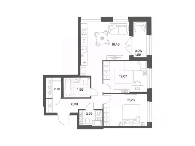Продается квартира площадью 63.04 м² на 3 этаже 2 секции в Речной квартал от компании ГК "ТРЕСТ". Площадь кухни 18.45 м². Семейный жилой комплекс комфорт-класса "Речной квартал" от Группы компаний "ТРЕСТ" расположен в Невском районе Петербурга на пересечении Октябрьской набережной и Русановской улицы. Первая очередь квартала состоит из трёх корпусов, расположенных лучеобразно, чтобы максимально использовать естественное освещение и обеспечить видовые точки на локацию. Проект выделяется современными архитектурными решениями и дизайном. Концепция развития и благоустройства придомовой территории разделена на зоны отдыха, досуга и игровые площадки с учетом возраста и потребностей детей и взрослых. Квартал рассчитан на семейных покупателей, поэтому здесь нет студий: только одно-, двух- и трёхкомнатные квартиры. В проекте представлены квартиры с кухнями-гостиными, мастер-спальнями, гардеробными и кладовыми. "Речной квартал" - современный жилой комплекс с разнообразным благоустройством придомовой территории, просторными европланировками, закрытой охраняемой территорией и подземными паркингами. На территории комплекса уже функционирует детский сад на 110 мест. Также в квартале будет построена общеобразовательная школа на 475 мест с бассейном и стадионом. Открытие школы запланировано на 2029 год. Квартиры в ЖК "Речной квартал" можно приобрести с готовой отделкой от застройщика. Для покупателей квартир предусмотрено два варианта чистовой отделки "Ваниль" и "Шоколад". Чистовая отделка в квартирах ЖК "Речной квартал" предполагает монтаж натяжных потолков, укладку ламината, оклейку стен обоями под покраску, установку светильников и межкомнатных дверей. При отделке новой квартиры применяются качественные, натуральные и экологичные материалы, монтируется стильная импортная сантехника европейских брендов. В объявлении указана стоимость квартиры при 100% оплате. При других формах оплаты - базовую стоимость квартиры уточняейте на официальном сайте компании или у менеджера отдела продаж. Застройщик АО "Специализированный застройщик "Строительный трест". Продается 2-комнатная квартира в новостройке в округе Народный в Санкт-Петербурге.