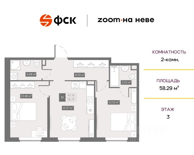 Цена со скидкой до 30% в прямой продаже от застройщика — только в этом месяце. При покупке апартаментов - паркинг за полцены. На все апартаменты действует беспроцентная рассрочка. Купите на распродаже! Покупка недвижимости в Zoom на Неве сейчас со скидкой до 30% позволит через 2 года получить доход до 6 300 000 руб. Роскошные виды на Неву. 2-к апартамент в комплексе класса бизнес-лайт Zoom на Неве на 5-м этаже. Общая площадь 47,74. Без отделки. Zoom на Неве расположен в новом месте силы рядом с центром города на первой линии Октябрьской набережной в Невском районе, всего в 7 км от исторической части Санкт-Петербурга. Большой выбор эргономичных и максимально продуманных планировок позволит каждому найти вариант по душе. Панорамные виды на Неву, благоустроенные дворы, детская игровая комната, подземный паркинг, коммерческие зоны на первом этаже, это и многое другое делает Zoom на Неве идеальным местом для жизни. Особенности: - Панорамные виды на Неву и город; - 10 мин. до Парка Строителей, 15 мин. до Лондон-молла, Ленты, Максидома, 15 мин. до метро "ул. Дыбенко", 12 мин. до КАД, 10 мин. до центра; - Единая архитектурная концепция. Сдержанные и монументальные фасады в неоклассическом стиле; - Парадный лобби для жильцов. Единый вход в комплекс с администратором, зоной ресепшн и охраной, зоной для бесконтактной доставки посылок и еды; - Подземный отапливаемый паркинг с доступом из парадной; - Доступно 3 варианта отделки на выбор: черновая, предчистовая (White Box) и чистовая; - Зоны отдыха для взрослых и детей, Wi-Fi-покрытие во дворе и в паркинге, зоны для питомцев, арт-объекты и много другое. В шаговой доступности вся необходимая инфраструктура от детских садов и школ до супермаркетов и салонов красоты; - Все происходящее контролируется видеокамерами, а покой внутренней территории и безопасность ваших детей гарантируется полным отсутствием транспорта во дворах в концепции "без машин". Купить 2-комнатную квартиру в новостройке в районе Невский в Санкт-Петербурге.