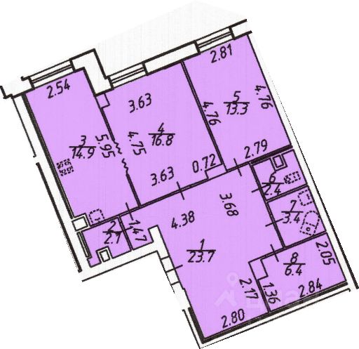 + Два санузла: большой совмещенный с ванной и маленький, где помещается раковина и стиральная машина.