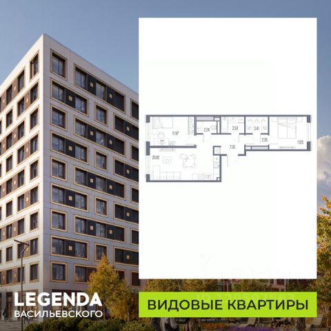 Просторная 2-комн. квартира с предчистовой отделкой в ЖК "LEGENDA Васильевского" на 3 этаже. Общая площадь: 56.02 кв.м., жилая: 22.11 кв.м., площадь просторной кухни-столовой: 20.6 кв.м. Комнаты изолированные, все окна выходят на одну сторону. В квартире один раздельный санузел. Высота потолков 2.72 м. "LEGENDA Васильевского" жилой квартал в минутной доступности от Финского залива, главного креативного хаба Санкт-Петербурга Севкабель Порта и других точек притяжения. Современные инженерные и технические решения, повышающие качество жизни TechnoBox включают в себя: стационарный и удаленный контроль дома, систему вентиляции Air Design - здоровое дыхание без лишнего шума, мультисервисную сеть, объединяющую коммуникационные системы, удаленное управление электроприборами, контроль отопления в каждом помещении, поддерживающий оптимальный температурный баланс во время "холодного" периода", датчики протечки, датчик открытия входной двери. Мультисервисная сеть (МСС) объединяет ключевые слаботочные системы дома, задавая им единый высокий стандарт работы, обеспечивая надёжность их функционирования и управления. Квартира готова к декорированию. Застройщиком сделана шумоизоляция; стены подготовлены для отделки; проведена электрика с учетом рекомендаций по расстановке мебели и бытовой техники; выровнен пол. В каждой квартире установлена взломостойкая входная дверь, окна со специальным термоизолированным алюминиевым профилем. Двор жилого комплекса "LEGENDA Васильевского" закрыт. Проект состоит из шести разноформатных корпусов с ритмичными фасадами в духе пост-конструктивизма. Геометрия жилого комплекса состоит из четко простроенных осей, чередующих открытые пространства и объемы корпусов, каждый из которых обладает своим визуальным кодом индивидуальным рисунком фасада и цветовой палитрой. Корпуса образуют периметр с общественными пространствами: площадью с кафе, магазинами и пешеходным променадом с детскими игровыми хабами, местами для спокойного отдыха и workout-зоной. Срок сдачи 4 квартал 2027 года. На территории комплекса предусмотрены теплый подземный паркинг и два наземных 4-х этажных паркинга. Продам 2-комнатную квартиру в новостройке в округе Гавань в Санкт-Петербурге.
