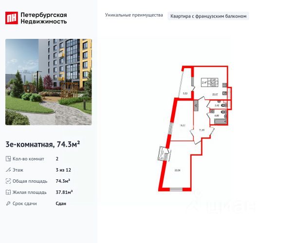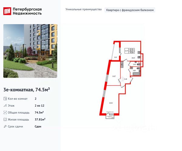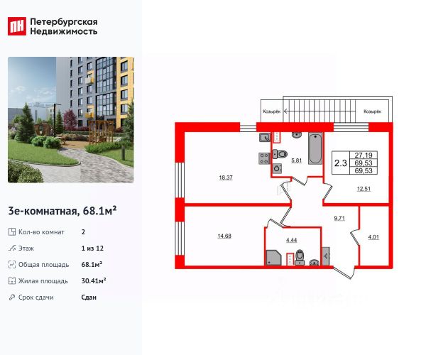 Продается уютная 2-комнатная квартира от застройщика в жилом комплексе "Бионика Заповедная" в динамичном Приморском районе. До метро можно добраться на транспорте всего за 11 минут. Удобная, классическая, функциональная европланировка, большая кухня-гостиная 17.4 м², вместительная прихожая 3 м². Общая площадь квартиры - 51.15 м², жилая 22 м², высота потолка 2.77 м. Квартира продается с отделкой "Норд Лайн светлый плюс". Что особенного в ЖК "Бионика Заповедная"? • Оазис в городе 3 минуты пешком до Новоорловского заказника (140 ГА) • Захватывающие виды из окон на хвойный лесопарк • Всесезонный "Заповедный парк" во дворе площадью 23000 кв.м. • 5 единых входных групп с авторским дизайном и лаундж-зонами, сити-виллы на первых этажах с палисадниками и высотой потолков до 4 м • Места притяжения: фонтан "Бионика", спортивный кластер со скейт-парком, фотозоны с арт-объектами 2-комнатная квартира в новостройке в округе Коломяги в Санкт-Петербурге.