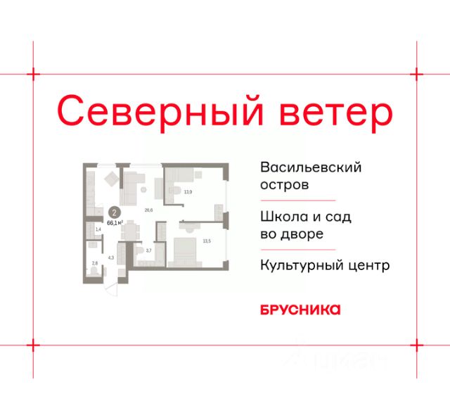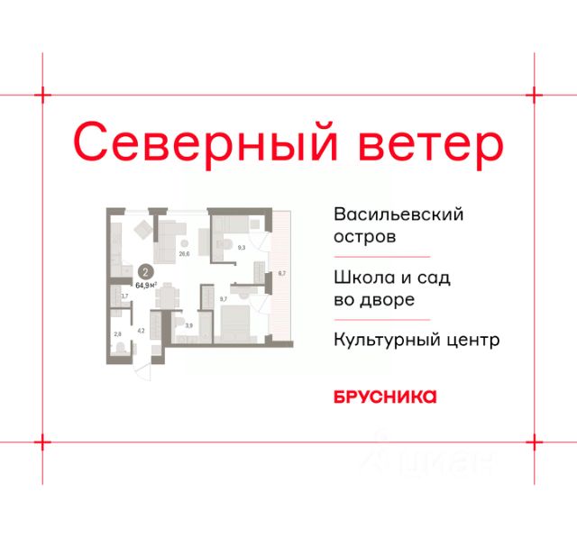 Двухкомнатная квартира с предчистовой отделкой в ЖК "Северный ветер" на 9 этаже. Общая площадь: 64.59 кв.м. Высота потолков 2.98 м. Дом монолитный, многоподъездный, переменной этажности, от 8 до 15 этажей. Квартира находится в 8-й секции высотой 15 этажей в корпусе 2-2. На этаже 10 квартир. В подъезде 1 пассажирский и 1 грузовой лифт. Окончание строительства - 4 квартал 2028 года. Оформление сделки по договору долевого участия. В основу концепции проекта "Северный ветер" легла идея деления квартала на шесть кластеров — активный городской, тихий природный, спортивный, семейный, культурный и рекреационный. Внутри каждого кластера будут организованы разные по характеру площади со своим назначением. Все их свяжет кольцевой бульвар, соединенный с большим парком и сопровождаемый водными аллеями по периметру всего квартала. Внешний облик "Северного ветра" вдохновлен скандинавским функционализмом и финским модернизмом, которым присущи лаконичные формы, динамичные разноуровневые объёмы, ритм окон, балконов и террас, сочетание натуральных текстур, а также единство экстерьера и интерьера. Дворы мы организовали на стилобатах домов. За счёт этого они приподнялись над улицей, стали еще более приватными и безопасными. Для тех, кому двор на стилобате кажется слишком приземленным, мы создали особенные зеленые террасы с великолепным видом на залив. Они появятся на крыше дома, в котором расположен дом культуры. Мы разделили лобби на два типа — большие (одно на каждый дом) и компактные (на каждую секцию). Для создания интерьеров лобби и холлов мы используем материалы природных оттенков, текстуры дерева и камня, матовые поверхности. В большие открытые пространства запускаем много естественного света, а витражное остекление органично связывает помещения с ландшафтом. В квартале спроектировано более 65 типов планировочных решений. Это значит, что любой жизненный сценарий может быть здесь реализован. #Z6Fdui 2-комнатная квартира в новостройке в округе Морской в Санкт-Петербурге.