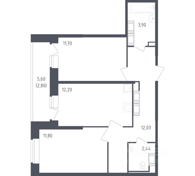 В продаже 2-комнатная квартира в корпусе 39 ЖК 'Живи! В Рыбацком'. Квартира располагается на 14 этаже, общая площадь 55.0 м2.