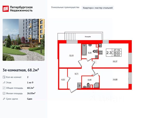 Продается просторная 2-комнатная квартира от застройщика в жилом комплексе "Прайм Приморский" в динамичном Приморском районе. До метро можно добраться на транспорте всего за 15 минут. Французский балкон придает особенный европейский шик комнате. Уникальная, функциональная европланировка, большая кухня-гостиная 20.07 м², просторная прихожая 11.48 м². Общая площадь квартиры - 74.5 м², жилая 37.81 м², высота потолка 2.77 м. Квартира продается с отделкой "Норд Лайн серый комфорт". Что особенного в ЖК "Прайм Приморский"? • Живописные виды на Шуваловский карьер и лесной массив • "Парящие" французские балконы • Центральная входная группа • Креативное пространство в центре проекта, летняя терраса для отдыха • Приватные лаундж-зоны на крыше домов (3 корпус) Продается 2-комнатная квартира в новостройке на улице Парашютная в Санкт-Петербурге.