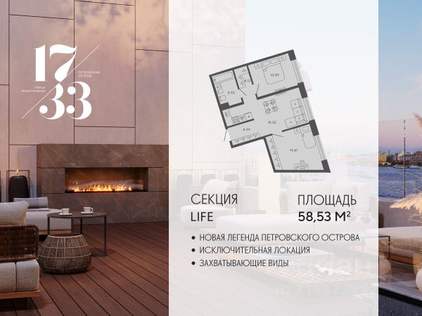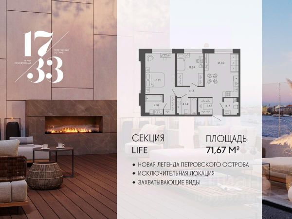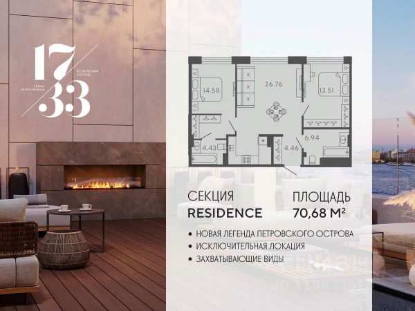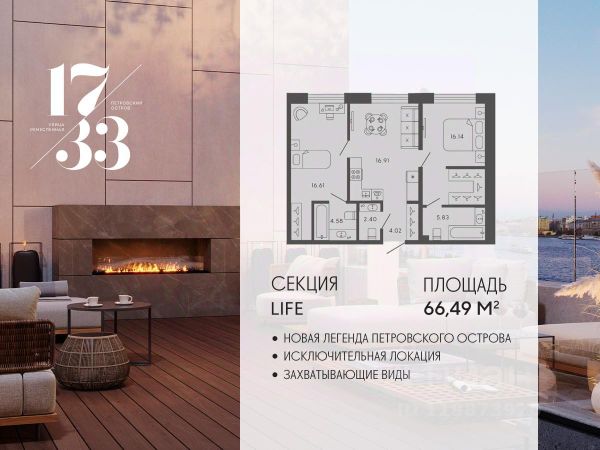 Сдаем в 2026 году! Апартамент 750 в Комплексе "17/33 Петровский остров" О проекте: Премиальный комплекс резиденций для истинных ценителей изысканной архитектуры, непревзойденного сервиса и необыкновенной панорамы Санкт-Петербурга. Уникальное расположение между Малой Невой и Петровским прудом подарит будущим резидентам неповторимое ощущение жизни на собственном уединенном острове. Уникальная локация. Проект расположен в объятьях главных островов Петербурга — Петроградской стороны, Васильевского и Крестовского, и в самой зеленой и выигрышной части Петровского — на первой линии Малой Невы, между величественной рекой и тихим Петровским прудом. До ключевых точек притяжения, любимых парков, шопинга и развлечений — пара минут на авто. 100% видовых апартаментов. Виды на Малую Невку, на Петровский пруд.; Проект разделен на три формата: Club, Life, Residence; 5-8 этажей; высота потолка до 7 метров; 1000 м2 общественных пространств; фитнес и СПА; кинозал и зал для семейных торжеств; коворкинг и детский клуб; лаундж с библиотекой; терраса площадью 120 м2 для резидентов; ELEMENT создаёт инновационные жилые и коммерческие объекты в Санкт-Петербурге и Москве, которые устанавливают новые стандарты эффективной жизни в мегаполисах. Продается 2-комнатная квартира в новостройке в округе Петровский в Санкт-Петербурге.