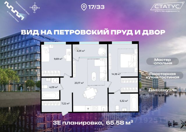Сдаем в 2026 году! Апартамент 698 в Комплексе "17/33 Петровский остров" О проекте: Премиальный комплекс резиденций для истинных ценителей изысканной архитектуры, непревзойденного сервиса и необыкновенной панорамы Санкт-Петербурга. Уникальное расположение между Малой Невой и Петровским прудом подарит будущим резидентам неповторимое ощущение жизни на собственном уединенном острове. Уникальная локация. Проект расположен в объятьях главных островов Петербурга — Петроградской стороны, Васильевского и Крестовского, и в самой зеленой и выигрышной части Петровского — на первой линии Малой Невы, между величественной рекой и тихим Петровским прудом. До ключевых точек притяжения, любимых парков, шопинга и развлечений — пара минут на авто. 100% видовых апартаментов. Виды на Малую Невку, на Петровский пруд.; Проект разделен на три формата: Club, Life, Residence; 5-8 этажей; высота потолка до 7 метров; 1000 м2 общественных пространств; фитнес и СПА; кинозал и зал для семейных торжеств; коворкинг и детский клуб; лаундж с библиотекой; терраса площадью 120 м2 для резидентов; ELEMENT создаёт инновационные жилые и коммерческие объекты в Санкт-Петербурге и Москве, которые устанавливают новые стандарты эффективной жизни в мегаполисах. Продается 2-комнатная квартира в новостройке в округе Петровский в Санкт-Петербурге.