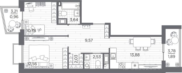 Площадь: 63,9 м² | Этаж: 10 из 11 | Лифты: 2 (пассажирский + грузовой в паркинг)