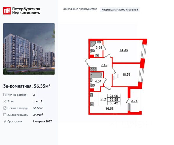 SAAN - новый мультиформатный проект доходной недвижимости в двух минутах от метро Пионерская. В 10 шагах от входа начинается Удельный парк. В проекте представлены различные варианты: от компактных студий до просторных резиденций с панорамными террасами, а также офисы и коммерческая недвижимость. Резиденты получают доступ к клубной инфраструктуре проекта: Городской термальный курорт Зона коворкинга Общественная гостиная с террасой Камерный кинотеатр Детская игровая зона Конференц-залы Бьюти-пространство Спортзал Комната для подкастов Общественное пространство на кровле с видом на город Отличительная особенность проекта - собственный SPA-комплекс, включающий в себя три бассейна, парные с видами на Удельный парк и зону релакса. Под авторством ITALY&CO выйдет проект модного гастро-пространства, флагманом которого станет двухуровневый ресторан с террасой, кафе для завтраков и лаунж-бар, обслуживающий зону лобби. Украшением прилегающей территории станет благоустроенное общественное пространство площадью 3500 кв.м., сочетающее традиции скандинавских садов и элементы азиатского дизайна. Эксплуатацией комплекса займется собственная управляющая компания. В юнитах можно проживать самостоятельно или сдавать их в аренду через управляющую компанию и получать пассивный доход. В цену юнитов включена дизайнерская чистовая отделка. Доступны программы гарантированной доходности для инвесторов. О застройщике Hansa Group — современный девелопер с 25-летним опытом. Компания развивает разные направления строительства: жилая и коммерческая недвижимость, производственные здания и спортивные сооружения. За 25-летний опыт работы реализовала более 50 собственных и партнерских проектов по всей России. Hansa Group интегрируем актуальные мировые тренды в сегмент доходной недвижимости и задает новый ориентир для инвестиций и жизни. Продам 2-комнатную квартиру в новостройке в районе Приморский в Санкт-Петербурге.