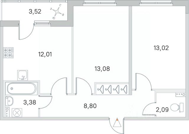 Просторная кухня-гостиная (17,13) и две изолированные комнаты (14,18 и 12,43)— идеальное решение для семьи. Два совмещенных санузла (с ванной и душевой) для вашего удобства, лоджия (3,67) с французским остеклением (от потолка до пола).