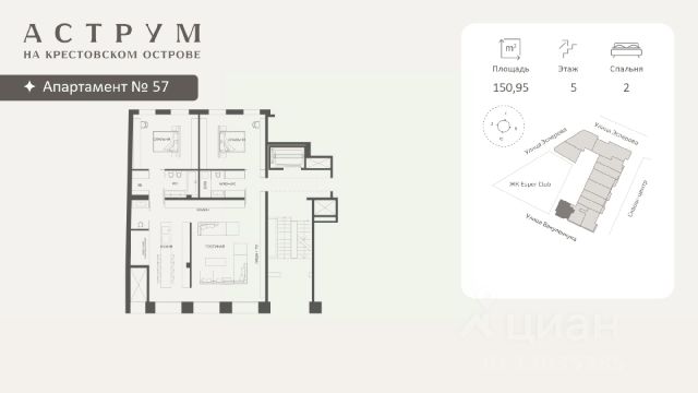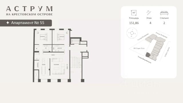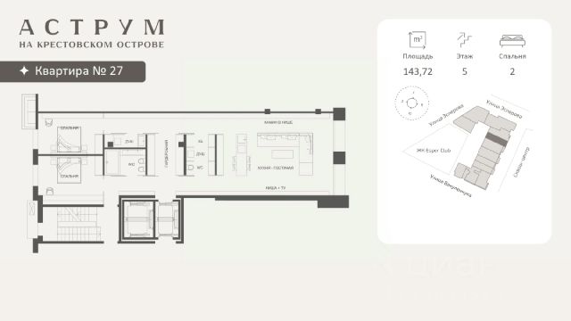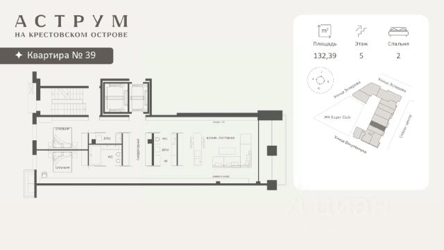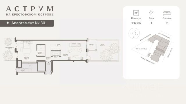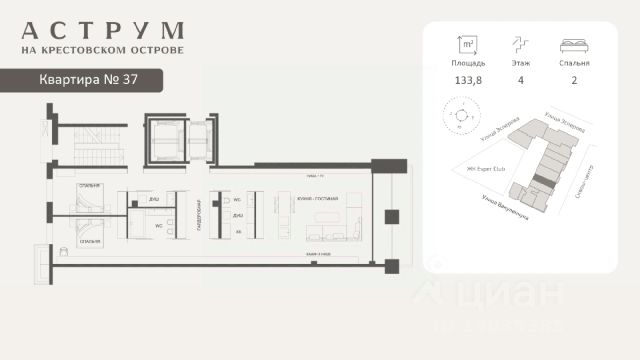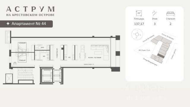 Клубный дом находится в восточной части Крестовского острова, где расположены преимущественно фешенебельные дома, что обеспечивает высокий статус окружения. Дом построен по проекту архитектурного бюро DBA в неоклассическом стиле. Фасады дома выполнены из светлого натурального камня и архитектурного бетона, с декоративными металлическими элементами. Свободные планировки квартир большой площади с панорамными окнами и французскими балконами идеальное пространство для воплощения самых смелых дизайнерских решений Проект объединяет 58 президенций: квартиры и апартаменты площадью 130 - 292 кв. м,. таун-виллы с отдельным входом и собственным зеленым патио, пентхаусы с террасами 160 - 500 кв. м. Высота потолков помещений варьируется 3,15 - 3,3 м. В комплексе предусмотрен двухуровневый паркинг на 102 машино-места, оборудованный зарядками для электромобилей, а также 17 келлеров площадью 3- 35 кв. м. Территория благоустроена и закрыта от посторонних, работает круглосуточное видеонаблюдение и система контроля доступа. В домах установлена IP-домофония с возможностью удаленного видеоконтроля. Резидентам доступны спа-зона, бассейн, хамам, финская сауна, гидромассаж, фитнес-зал, а также круглосуточный консьерж-сервис. В радиусе 2 км доступны детские сады, школы, медицинские учреждения, кафе, рестораны, магазины, спортивные клубы, яхт-клуб, Елагин остров, Приморский парк Победы и Диво-остров. Газпром Арена находится в 3 км. За 10 минут транспортом можно выехать на ЗСД, а дорога до центра Санкт-Петербурга занимает около 25 минут. Продается 2-комнатная квартира в новостройке на улице Эсперова в Санкт-Петербурге.