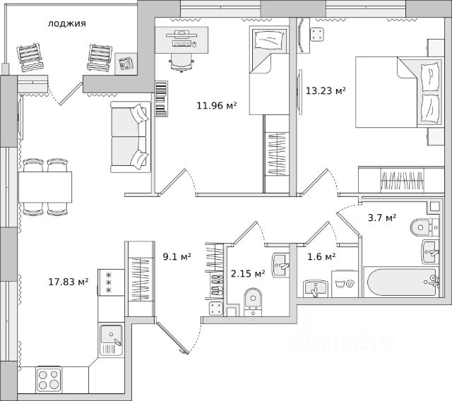• Просторная, светлая 2-комнатная квартира с уникальной планировкой: две гардеробные, эрогономичная кухня, удобный просторный коридор со шведской стенкой, большая комфортная ванная комната и бонусом панорамная лоджия 6 кв.м. с лаунж-зоной для отдыха. Выходы на лоджию с обеих комнат.