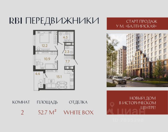 "Передвижники" — новый дом от RBI в Адмиралтейском районе Петербурга, в 5 минутах пешком от метро "Балтийская" на набережной Обводного канала, 118. Здесь, на территории бывшего Варшавского вокзала, где в XIX веке начинался железнодорожный маршрут из России в Европу, сегодня вновь ощущается энергия пути — дух движения, свободы и вдохновения. В шаге от дома — самый большой в Европе фудмолл Vokzal 1853, вдохнувший новую жизнь в здание исторического вокзала. Рядом с ним — Воскресенская церковь, а напротив, в перспективе Измайловского проспекта сияет небесный купол Троице-Измайловского собора — шедевра зодчества архитектора Василия Стасова в духе русского ампира. Из окон вашей квартиры исторический центр как на ладони! А до Московского проспекта и метро "Фрунзенская" — 10 минут пешком. В архитектуре дома философия движения воплотилась в характерной для проектов бюро "А.Лен" кирпичной 3D-кладке и акцентных входных порталах, которые визуально перекликаются с пакгаузом товарной станции Варшавского вокзала. В едином П-образном корпусе — 5 секций на 355 квартир высокого класса от студий 25 м² до еврочетырёхомнатных 88 м². В первой секции — три квартиры с видовыми террасами. Потолки на типовых этажах — 2,72 м, на 10 — 12 этажах их высота достигает 3 м. Все квартиры продаются с отделкой White Box. Динамику приватного двора без машин задаёт не только ландшафтное озеленение, но и диагональная кладка наземного покрытия. Встроенные в мощение светильники, словно огни перрона, освещают ваш путь домой. Даже детские площадки в "Передвижниках" отражают исторический бэкграунд: арочные домики напоминают о вокзальной архитектуре и приглашают в увлекательное путешествие! Качели, горка, песочница и холм-лазалка — здесь ваши дети познают мир через движение, смех и смелость. На площадке для малышей появятся домик и игровая доска от Richter RUS. Подростки смогут заниматься воркаутом на многофункциональной раме от FOREMAN. Входная группа дома — архитектурный портал между шумным городом и приватным пространством. Здесь в помещении 135 м² появятся стойка ресепшн с витражной изгородью, лаунжи для встреч, коворкинг с кофепоинтом и свободным Wi-Fi для работы и творчества. В доме оборудуют подземный паркинг на 213 м/м, 10 из которых — с зарядкой для электромобилей. Купить машиноместо здесь могут только жители. Для вашего удобства на лифте из паркинга вы можете сразу подняться на свой жилой этаж. Для гостей у дома оборудуют парковку на 48 автомобилей. В отдельно стоящем здании, примыкающем к дому, RBI построит муниципальный детский сад на 105 малышей. "Передвижники". Дом для тех, кто не стоит на месте! Продам 2-комнатную квартиру от застройщика в районе Адмиралтейский в Санкт-Петербурге.