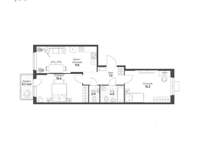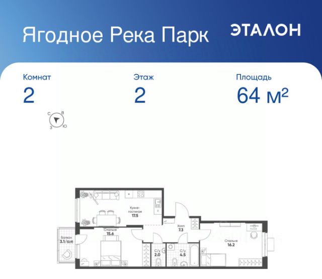 Продаётся 2-комнатная квартира в сданном доме (Дом 2), срок сдачи: IV-кв. 2023, общей площадью 50.3 кв.м., на 4 этаже. Расположение, транспортная доступность