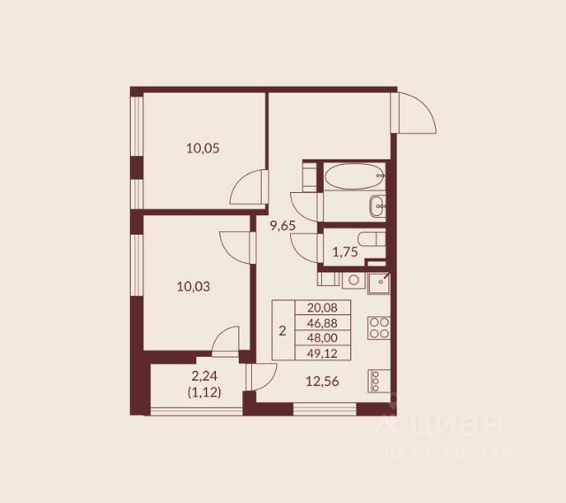• ✅ Минимальная площадь: 42,9 м²