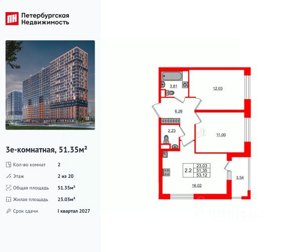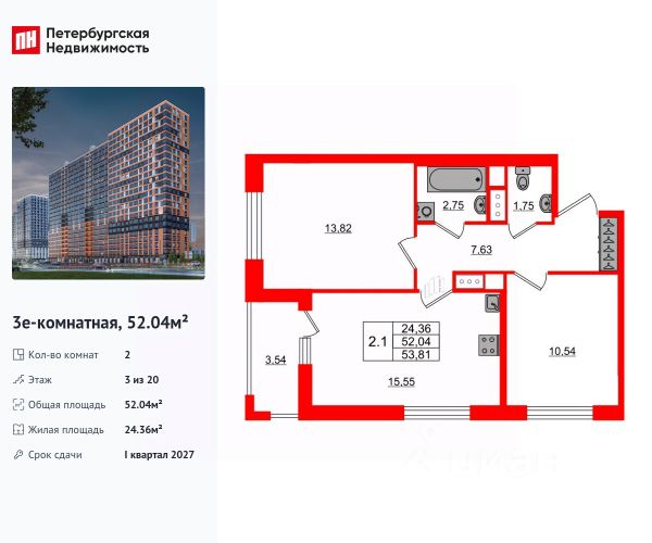 Цена действует при 100% оплате и на определенные ипотечные программы. Подробности — в отделе продаж по телефону. Продается 2-комнатная квартира в ЖК "Октябрьская набережная" на 25 этаже. Общая площадь составляет 53.30 кв. м. Квартира с чистовой отделкой . Жилой комплекс "Октябрьская набережная" располагается по адресу Санкт-Петербург, Невский. Октябрьская набережная - жилой комплекс на берегу Невы, который отличается живописными видами и удобным местоположением: в окрестностях ЖК есть всё необходимое для комфортной жизни. Расположение: • 2 минуты пешком до набережной Невы; • 7 минут до станции метро "Улица Дыбенко" на автомобиле; • 8 минут до Большого Обуховского моста на автомобиле; • 15 минут до ТРК "Лондон Молл" на автомобиле. Будущие жильцы могут обустроить квартиру по своему вкусу: предлагается 2 вида отделки - уютный темный "Comfort Wood" и легкий светлый "Comfort Stone". Отделка выполняется из качественных материалов: прочный ламинат с фактурой светлого дерева или белого камня, светлые обои под покраску, лаконичные межкомнатные двери. Вход в парадные расположен на уровне земли и создает доступную среду для пожилых людей, людей с ограниченными возможностями и мам с колясками. На цокольном этаже находятся кладовые, которые позволят освободить пространство квартиры от лишних вещей. Во всех парадных расположены колясочные, рядом с ними - велопарковки. На территории комплекса есть всё для любителей активного отдыха: спортивные площадки, уличные тренажеры, велодорожки, места для игры в баскетбол и волейбол. Спортсмены могут насладиться живописными видами во время пробежки вдоль набережной. В зелёных и облагороженных дворах есть всё и для семей с детьми: тематические площадки, детский сад и даже школа. Комфортная среда для питомцев - еще одно преимущество "Октябрьской набережной": рядом с домами находится площадка для выгула собак. Для удобства автомобилистов на территории комплекса устроены крытые паркинги с безопасными охраняемыми выездами и большим количеством машино-мест. В пешей доступности расположены супермаркеты, кафе, парикмахерские, отделения банков. Преимущества: • Первая береговая линия • Двор без машин • Доступная среда • Развитая инфраструктура • Школа и детский сад во дворе • Близость к метро Успейте приобрести квартиру на выгодных условиях! Чтобы узнать подробности, обращайтесь за консультацией по телефону.