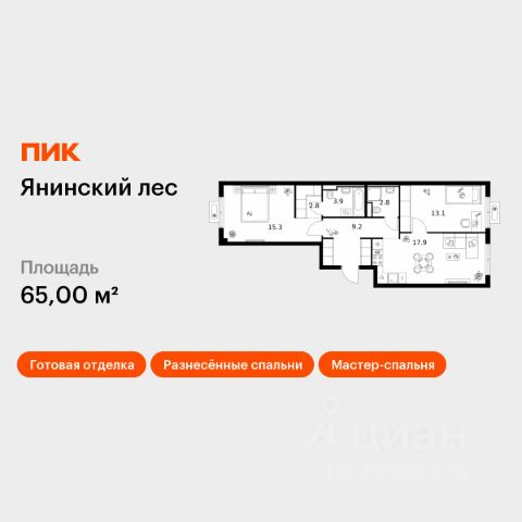 Продаётся 2-комн. квартира площадью 50,8 кв.м на 3 этаже 15 этажного дома (Корпус 1, Секция 1) проекта ПИК Янинский лес. Светлый просторный подъезд на уровне земли, функциональная планировка, большие окна, c отделкой. Жилой квартал "Янинский лес" возводится в районе Янино-1 Ленинградской области. Автобусная остановка находится в 3 минутах пешком. Проект расположен вплотную к восточной границе Санкт-Петербурга - в 4 минутах от КАД. До метро "Ладожская" - 23 минуты на общественном транспорте. До исторического центра города можно доехать за 25 минут на автомобиле. "Янинский лес" - масштабный проект из 32 жилых корпусов, где будет всё для комфортной жизни. Здесь предусмотрены надземные паркинги, откроются детские сады, школа и поликлиника. Кроме этого, появятся места, в которых можно проводить свободное время: ледовая арена и торговый центр площадью больше 3000 м². Жилой район строится по всем правилам ПИК-Стандарта: в зелёных дворах-парках появятся современные детские и спортивные площадки, пешеходный бульвар и другие места для отдыха. На первых этажах разместятся магазины, кафе и другие сервисы. Во дворах не будет автомобилей, а для гостей предусмотрены парковочные места. Проект окружают лесные массивы. В пешей доступности находится Ржевский лесопарк: летом там можно гулять и собирать грибы, а зимой кататься на лыжах. Также рядом расположен памятник природы Колтушские высоты - парк с обустроенными экотропами и веломаршрутом. А главное место притяжения местных жителей - озеро с обустроенным местом для пикников. Артикул 1048635 (Застройщик ООО "СПЕЦИАЛИЗИРОВАННЫЙ ЗАСТРОЙЩИК"ЭКСТРАГРАД") [cn_sbp_1847014]