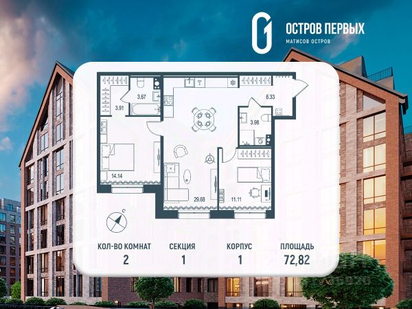 Остров первых новый премиальный квартал в центре Петербурга, на Матисовом острове. Всего в нескольких минутах находятся легендарная Новая Голландия, величественный Мариинский театр и вся культурная палитра Петербурга. Архитектура, разработанная Евгением Подгорновым и его студией INTERCOLUMNIUM, отражает характер города. Фасады облицованы кирпичом терракотового и серого оттенков. Все материалы отвечают высокому качеству строительства. Компания Fizika Development бережно восстановит исторический объект, воплощающий величие императорской России. Краснокирпичное производственное здание с водонапорной башней завода шотландского инженера Чарльза Берда станет лицом клубного квартала "Остров первых" и новой точкой притяжения для горожан. Приватная территория, сочетающая камерную атмосферу и комфорт, была создана ведущими урбанистами города. Проектом предусмотрен одноуровневый подземный паркинг под жилыми корпусами и дворовым пространством, а также гостевые парковочные места по периметру квартала. Особое внимание уделено безопасности: закрытые дворы, охраняемая территория, круглосуточное видеонаблюдение и контроль доступа 24/7. В премиальном квартале "Остров первых" представлены уникальные планировочные решения: от уютных студий до просторных трехкомнатных квартир с потолками до 5,1 метров.