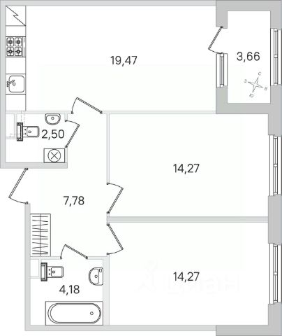В продаже квартира 101,05 кв.м, расположенная на 2 этаже 3 этажного корпуса. Планировкой предусмотрены кухня-гостиная площадью 22,73 кв.м и кухня 9,0 кв.м., просторная детская для двух детей, спальня площадью 17,77 кв.м с собственной гардеробной. В холле место для системы хранения, гостевой с/у, постирочная. Высота потолка 3м, панорамные окна.
