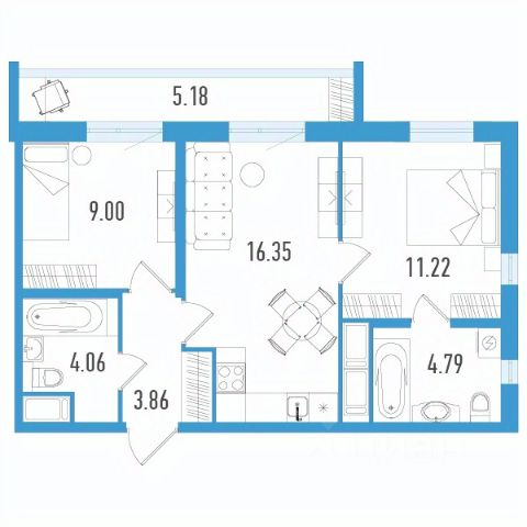 • ✓ В базе Циан 4 2-комнатных квартир от застройщика на улице Маршала Казакова в Санкт-Петербурге