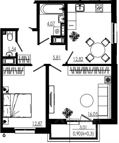В трех домах жилого комплекса "Ювента" представлено к продаже более тысячи квартир с количеством комнат от одной до трех (а также кварт
