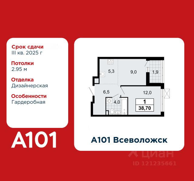 В продаже квартира площадью 51.85 кв. м с отделкой white box на 12 этаже 16 этажного дома. Квартира находится в 4834 корпусе. Жилой комплекс "Ленский" - место, где встречаются природа и городская среда, а умиротворение загородной жизни сочетается с комфортом. Проект располагается на северо-востоке Санкт-Петербурга, в Южном микрорайоне Всеволожска, в 16 км от КАД, с удобным выездом на Колтужское шоссе и Дорогу Жизни. В его состав входят два 18-этажных корпуса с видами на Колтушские высоты, сервисы повседневной инфраструктуры, собственный приватный двор, просторный паркинг для жителей и гостей. Девелопер проекта - ГК "Развитие". Транспортная доступность На автомобиле: • 30 мин до станции метро "ул. Дыбенко" • 35 мин до центра Санкт-Петербурга Архитектура Архитектурный облик отличается современным дизайном. Панорамные окна с большой площадью остекления наполняют квартиры светом, актуальная финская технология Peikko защищает квартиры от промерзания даже в северном климате. Дома прочные, долговечные, их конструкция гарантирует тёплый микроклимат зимой, прохладу летом и отличную звукоизоляцию. Планировочные решения Функциональные планировки отличаются простотой и эргономичностью, пространство эффективно используется даже на небольшой площади. К кухне примыкает просторная лоджия с панорамным остеклением, во всех двух- и трехкомнатных квартирах - по два санузла. Все квартиры сдаются с отделкой white box, которая позволяет существенно сократить стоимость и сроки ремонта. По желанию доступны варианты чистовой отделки под ключ: "комфорт" и "бизнес" с использованием современных материалов. Благоустройство - приватный двор без машин; - всесезонное озеленение; - спортивный корт для футбола и баскетбола; - детские площадки с мягким покрытием; - площадка для настольного тенниса; - скамейки и беседки для отдыха по всему периметру; - прогулочные и велосипедные дорожки в тени деревьев; - сквозные парадные с большими окнами; - просторная входная группа на уровне земли; - колясочные помещения; - торговая галерея в шаговой доступности. Окружение - 5 парков: заповедник "Колтушские высоты", парк "Софиевка", "Румболовский", "Кенша", Державинский и Алексеевский парки. За 5-10 минут можно добраться транспортом до Песчанки и Петропавловского парка. Ковалевский лесопарк выделяется прекрасными экотропами, зонами для пикников и велодорожками, а Ждановские озера - благоустроенными пляжами; - рядом Колтушинский фреш-маркет с фермерскими продуктами и крупный ТЦ "Юбилейный", где работают более 70 магазинов, кинотеатр и фуд-корт; - 10 детских садов, начальная и средняя школы, центры дополнительного образования, творческие секции; - в ближайшей доступности фитнес-центры, бассейн, теннисный клуб и даже центр верховой езды; - культурные и знаковые места: Музей-усадьба "Приютино", музей "Дом Авиаторов", мемориальный комплекс "Дорога Жизни", многочисленные пешеходные маршруты. 2-комнатная квартира с отделкой в Всеволожске.