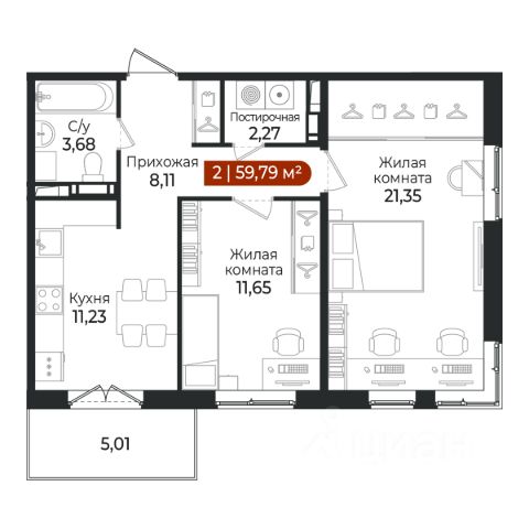 2 - комнатная квартира на 5 этаже общей площадью 52,28 м² в жилом комплексе Арт Парк от застройщика ГК Алгоритм. Разнообразие планировок Выбирайте уютную однокомнатную или просторную четырехкомнатную квартиру, с площадью кухни до 23 м2 с гардеробной или постирочной. Чистовая отделка квартир Отделка комнат и кухни выполнена в нейтральных тонах, которые создают атмосферу тепла и уюта, а также являются прекрасным базовым решением для интерьера в любом стиле. Светлые оттенки стен и потолка визуально расширяют пространство и наполняют помещение естественным светом. В отделке санузла также использованы светлые оттенки. Функциональная мебель и сантехника подобраны с учетом эргономики помещения, создавая максимальный комфорт при использовании. Увеличенные оконные проемы и потолки высотой 2,74 м придают квартирам в ЖК Арт Парк ощущение простора, обеспечивая максимальное естественное освещение и свежий воздух. Энегроэффективный дом (класс В) строится по финским технологиям: наружные стены изготовлены из заводских трехслойных железобетонных панелей толщиной 390 мм, фасады утеплены - толщина утеплителя 150 мм - и закрыты декоративным слоем -толщина 90 м Парадные При отделке парадных мы использовали материалы, которые легко поддаются уборке и сохраняют первоначальный вид долгие годы. Также предусмотрены колясочные для безопасного хранения детских колясок, велосипедов и самокатов. Кладовые Кладовые расположены прямо в доме, вы экономите полезное пространство в своих квартирах. Внутренний двор Для детей и взрослых на территории ЖК имеются детские и спортивные площадки. Кроме того, чтобы обеспечить безопасность и уединенность, территория жилого комплекса полностью закрыта. Окружение В пешей доступности школа, детский сад, амбулатория, магазины, пункты выдачи. На территории поселка находится парк бывшей усадьбы барона Медема "Щеглово", который является памятником архитектуры садово-паркового искусства. Открытая парковка Для вашего автомобиля всегда найдется место. Собственная УК Гарантия порядка в доме и во дворе.