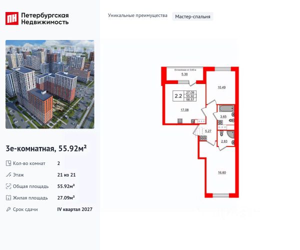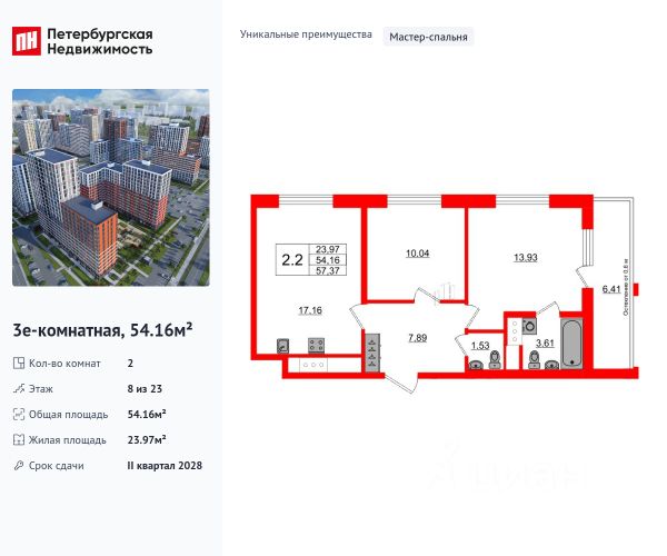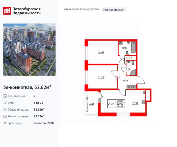 Продается просторная 2-комнатная квартира от застройщика в жилом комплексе "Город звезд" в новом городе на правом берегу Невы. До метро можно добраться на транспорте всего за 13 минут. Мастер-спальня с собственной ванной комнатой. Самое приватное пространство в вашей квартире. Уникальная, функциональная европланировка, большая кухня-гостиная 18.35 м², вместительная прихожая 6.75 м². Общая площадь квартиры - 59.04 м², жилая 25.94 м², высота потолка 2.77 м. Квартира продается с отделкой "NORD LINE SILVER" Что особенного в ЖК "Город звезд"? • Инновационный Лицей Setl с оригинальной архитектурной концепцией и уникальной образовательной средой • Невский лесопарк под окнами - всегда свежий воздух и полноценный отдых на природе • Четыре тематические площади отдыха с разнообразным благоустройством • Аллея Звёзд - променад протяженностью 5 км с ландшафтным озеленением, зонами отдыха и велодорожкой • Выход на набережную реки Утки, где можно порыбачить или взять напрокат лодку • Единая входная группа с ресепшен и подземный паркинг