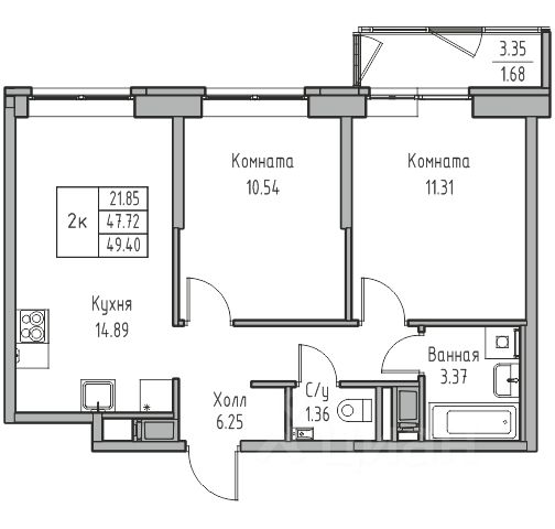 • ✅ Минимальная площадь: 49,1 м²