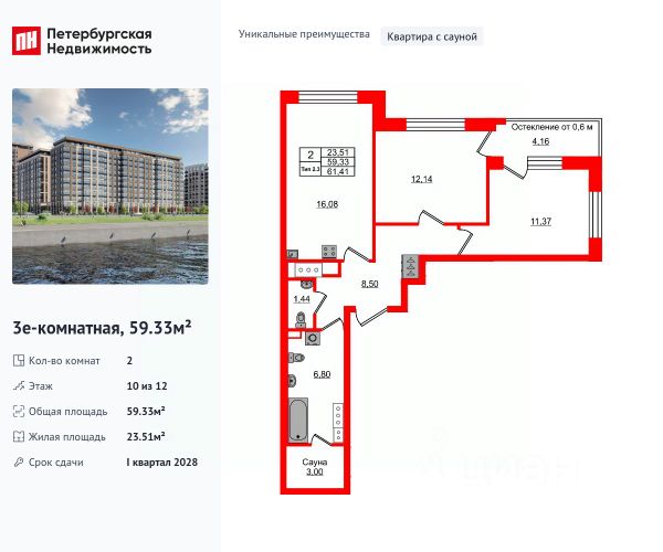 Цена со скидкой до 30% в прямой продаже от застройщика — только в этом месяце. На апартаменты действует беспроцентная рассрочка. Роскошные виды на Неву. 2-к апартамент в комплексе класса бизнес-лайт Зум на Неве на 11-м этаже. Общая площадь 50,8. Предчистовая отделка. Зум на Неве расположен в новом месте силы рядом с центром города на первой линии Октябрьской набережной в Невском районе, всего в 7 км от исторической части Санкт-Петербурга. Большой выбор эргономичных и максимально продуманных планировок позволит каждому найти вариант по душе. Панорамные виды на Неву, благоустроенные дворы, детская игровая комната, подземный паркинг, коммерческие зоны на первом этаже, это и многое другое делает Зум на Неве идеальным местом для жизни. Особенности: - Панорамные виды на Неву и город; - 10 мин. до Парка Строителей, 15 мин. до Лондон-молла, Ленты, Максидома, 15 мин. до метро "ул. Дыбенко", 12 мин. до КАД, 10 мин. до центра; - Единая архитектурная концепция. Сдержанные и монументальные фасады в неоклассическом стиле; - Парадный лобби для жильцов. Единый вход в комплекс с администратором, зоной ресепшн и охраной, зоной для бесконтактной доставки посылок и еды; - Подземный отапливаемый паркинг с доступом из парадной; - Доступно 3 варианта отделки на выбор: черновая, предчистовая (White Box) и чистовая; - Зоны отдыха для взрослых и детей, Wi-Fi-покрытие во дворе и в паркинге, зоны для питомцев, арт-объекты и много другое. В шаговой доступности вся необходимая инфраструктура от детских садов и школ до супермаркетов и салонов красоты; - Все происходящее контролируется видеокамерами, а покой внутренней территории и безопасность ваших детей гарантируется полным отсутствием транспорта во дворах в концепции "без машин".