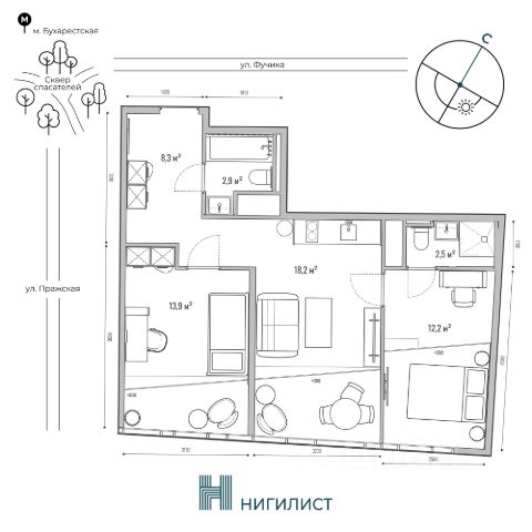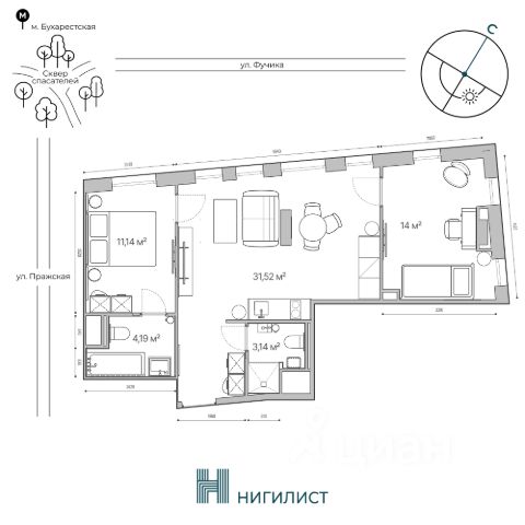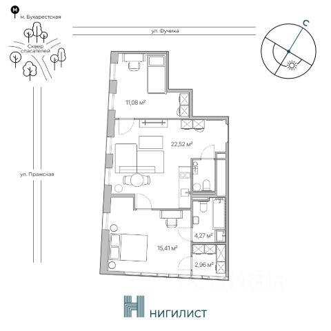 Продаётся 2-комнатная квартира в строящемся доме (Корпус 1), срок сдачи: I-кв. 2028, общей площадью 47.42 кв.м., на 4 этаже. Новый жилой дом от застройщика "СЗ БЛЭКСМИТ" расположен по адресу: Санкт-Петербург, Улица Фучика, д. 17, литера В.