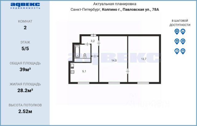 Продаётся 2-комнатная квартира в сданном доме (Рубежное, 14 ), срок сдачи: IV-кв. 2023, общей площадью 54.5 кв.м., на 1 этаже. Жилой комплекс эконом-класса "Юттери" строится в городе Колпино Ленинградской области на улице Понтонная.ЖК расположен возле Лагерного шоссе, по которому 2,2 км до Петрозаводского шоссе и 4 км до Колпинского шоссе. По первой трассе - 10,5 км до метро "Рыбацкое" и 13 км до Кольцевой автодороги, по второму (через Софийскую улицу или через Московское шоссе) - 15 км до КАД в районе метро "Купчино" и "Звездная".В 1 км от комплекса находится железнодорожная станция Колпино, от которой на электричке 35 минут до Московского вокзала (метро "Площадь Восстания" и "Маяковская"), до платформы Обухово (с одноименным метро) - 15 минут.От станции Колпино в сторону Санкт-Петербурга (до станций метро "Купчино", "Звездная", "Рыбацкое") регулярно ходит множество маршруток. Время в пути - от получаса до часа.При передвижении на автотранспорте надо учитывать серьезную загруженность вышеуказанных трасс, особенно в часы пик. Купить 2-комнатную квартиру в панельном доме в Колпино.