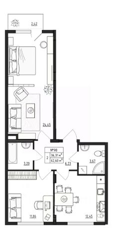 Квартира с продуманной планировкой, которая позволяет максимально эффективно использовать каждое помещение - это позволит получить максимум комфорта для жизни.