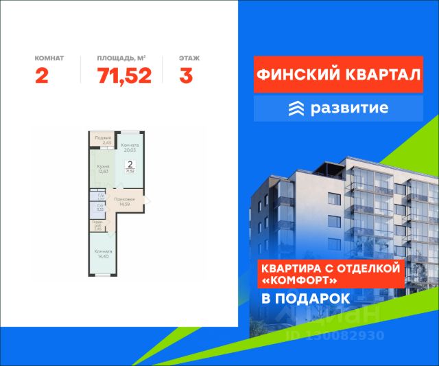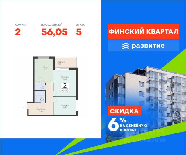 Продается квартира площадью 56.05 кв. м без отделки. Квартира расположена на 3 этаже 8 этажного дома, в жилом комплексе комфорт-класса "Финский Квартал". "Финский квартал" - это уникальный проект комфорт-класса для тех, кто хотел бы жить на природе, но при этом находиться вблизи Северной столицы. Расположенный в окружении одного из самых крупных парков Ленобласти - Лахтинского, проект предлагает своим жителям доступную инфраструктуру, комплексное благоустройство территории, 6 секций переменной этажности с современной архитектурой, которая гармонично дополнит район и будет радовать проживающих еще много лет. Найдите свою идеальную квартиру в ЖК "Финский Квартал"! Расположение Пешком: - 5 мин. до детского сада и супермаркета; - 8 мин. до остановки "Зеленая улица"; - 10 мин. до лесопарковой зоны. На автомобиле: - 3 мин. до Приозерского шоссе; - 10 мин. до Выборгского шоссе; - 12 мин. до КАД; - 30 мин. до ст. метро "Проспект Просвещения". Благоустройство - большой яркий двор с ландшафтным дизайном; - живая изгородь, кустарники и хвойники; - умное зонирование тихих и активных площадок; - сквер для прогулок и отдыха; - изумрудные лужайки для пикников; - дорожки для пешеходов и велосипедистов; - большие игровые площадки; - мягкое покрытие для безопасности детей; - тренажеры, турники и веревочные комплексы; - пространство только для пешеходов - без машин; - наземная парковка за пределами двора; - специальные площадки для выгула питомцев; - светлые дизайнерские холлы; - светопрозрачное остекление и большие окна; - декоративная подсветка парадных; - колясочные помещения для комфорта родителей; - места для хранения велосипедов и самокатов. Окружение - свежий воздух: парк усадьбы "Осиновая Роща", Лахтинский парк, лесопарк "Курортный", Левашовский заказник, Ново-Кавголовский лесопарк; - водные объекты: Сестрорецкий Разлив, пляжи у Тохколодского и Большого озер, залив Сярюнлахти; - инфраструктура: 2 детских сада, школа, кафе, продуктовый супермаркет, больница; - для крупных покупок: ТРЦ "Китай-Город", "Мега-Парнас"", "Гранд Каньон"; - активный отдых: горнолыжные комплексы "Охта-Парк" и "Токсово", конный клуб "Осиновая Роща", ФОК "Норус". Купить 2-комнатную квартиру первичка в сельском поселении Юкковское Всеволожского района.
