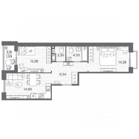 Двухкомнатная квартира с предчистовой отделкой в ЖК "RESPECT" на 2 этаже. Общая площадь: 56.1 кв.м., жилая: 23.32 кв.м., площадь просторной кухни-столовой: 15.05 кв.м. Комнаты изолированные, все окна выходят на одну сторону. В квартире один балкон и одна лоджия, два совмещенных санузла. Наличие в квартире террасы открывает возможность для обустройства дополнительной площади. Высота потолков 2.7 м. Квартира будет сдана с отделкой WHITE BOX, в которую включены следующие виды работ: - заливка стяжки; - установлена система отопления квартиры; - подготовлены потолки; - все стены выровнены, загрунтованы и отштукатурены; - электрическая проводка разведена по комнатам. Квартира будет готова к чистовой отделке. Квартира находится в корпусе 6. Дом монолитный, одноподъездный, высотой 13 этажей. На этаже 8 квартир. В подъезде 1 пассажирский и 1 грузовой лифт. Окончание строительства - 4 квартал 2026 года. Оформление сделки по договору долевого участия. В шаговой доступности от жилого комплекса расположены станции метро (расстояние по прямой): "Лесная" (800 м), "Площадь Мужества" (1.4 км), "Выборгская" (1.9 км), также недалеко от этого корпуса расположены станции метро: "Академическая", "Политехническая". Квартал строится на Полюстровском пр, 87, в одной из самых востребованных локаций Петербурга. В 10 минутах пешком - метро "Лесная" и в 10 минутах на транспорте - Петроградская сторона. Высота домов от 7 до 13 этажей. На территории Respect строится школа на 1125 учащихся и детский сад на 240 мест. Запроектированы собственная газовая котельная, закрытая территория, дворы без машин и подземные паркинги с лифтами. Вентилируемые фасады облицованы клинкерным кирпичом. Дома из этого материала служат веками, являясь гордостью хозяев. Дизайн парадных зон и входных групп - сочетание лаконичности отделки и декоративных элементов с текстурами из натурального камня и дерева с приглушенной подсветкой теплым светом. Во входных группах расположены гостевые зоны с мягкой мебелью. Вся территория квартала будет связана единой концепцией благоустройства, разработанной ландшафтным бюро L.BURO. В основе - идея создания увлекательного ландшафтного пространства для насыщенной жизни, включающего в себя пейзажные зоны, современные архитектурные композиции, открытые террасы на стилобатах с зонами отдыха и парклетами, спортивными площадками. Это пространство для людей всех возрастов и различных увлечений. На эксплуатируемой кровле на уровне первого этажа в домах 1 и 4 будут обустроены общественные видовые террасы. В квартале запроектированы внутренние закрытые территории дворов домов без доступа автомобилей и безбарьерная среда для велосипедистов и колясок. Предусмотрены IP-домофония с функцией дистанционного открывания калиток и парадных, а также дистанционный сбор показаний счетчиков и мобильное приложение для жителей. Для безопасности жителей квартала - круглосуточное видеонаблюдение и служба охраны. В каждой квартире предусмотрены внешние корзины для конд Продается 2-комнатная квартира первичка на проспекте Полюстровский в Санкт-Петербурге.