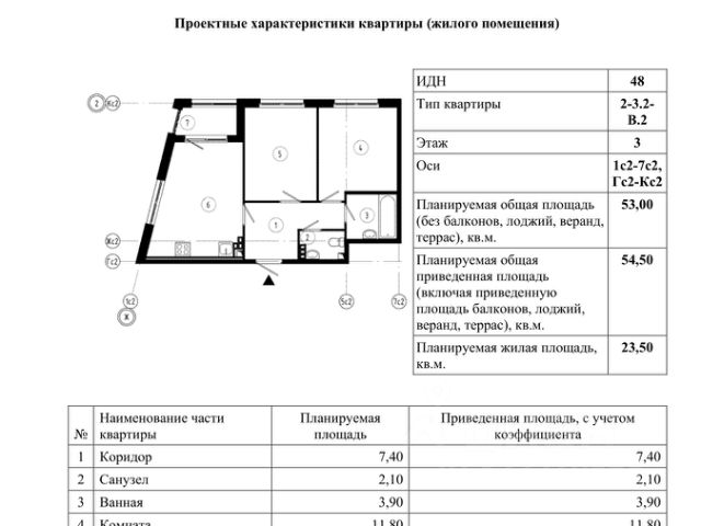 Площадь квартиры: 65,4 кв.м. + 3,6 кв.м лоджия