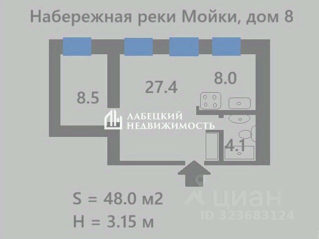 Продаем ДВУХкомнатную квартиру на набережной реки Мойки в ДВУХ шагах от Эрмитажа.