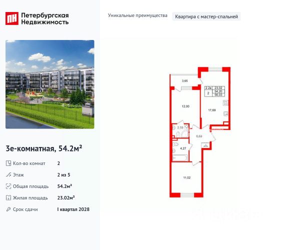 Продается уютная 2-комнатная квартира от застройщика в жилом комплексе "Парадный ансамбль" в престижном Московском районе. До метро можно добраться на транспорте всего за 20 минут. Удобная, классическая, функциональная европланировка, большая кухня-гостиная 17.27 м², вместительная прихожая 5.68 м². Общая площадь квартиры - 50.47 м², жилая 22.32 м², высота потолка 2.77 м. Квартира продается с отделкой "NORD LINE WHITE". Что особенного в ЖК "Парадный ансамбль"? • Инновационный Лицей Setl с оригинальной архитектурной концепцией и уникальной образовательной средой • Масштабное малоэтажное строительство в престижном Московском районе • Рекреационные зоны: парадный парк в центре квартала, ручей с собственной набережной, центральная площадь, ресторанный комплекс и пешеходный бульвар • Фасады из керамогранита и кирпича с яркими и акцентными входными группами • Две самые большие площадки Setl Kids и Setl Sport • Уникальные квартиры.High Flat на последних этажах, палисадники у квартир на первом этаже, семейные секции, квартиры с саунами и окном в ванной