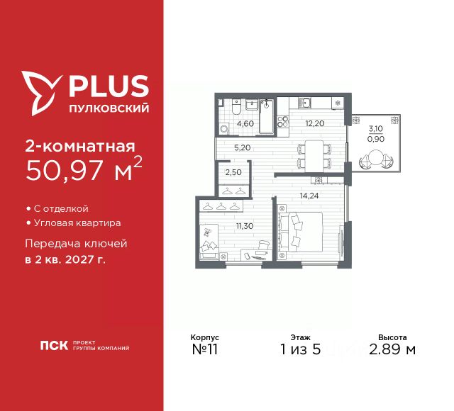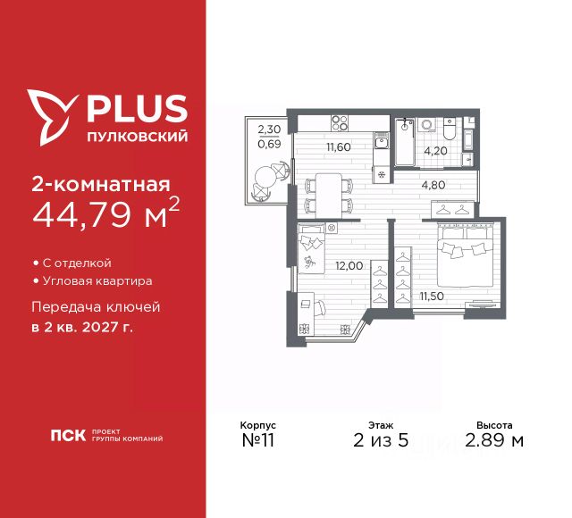 Дом монолитный, трехподъездный, высотой 5 этажей. Квартира находится в 3-й секции в корпусе 11. На этаже 9 квартир. В подъезде 1 грузовой лифт. Начало строительства - 1 квартал 2026 года. Окончание строительства - 2 квартал 2027 года. Оформление сделки по договору долевого участия.
