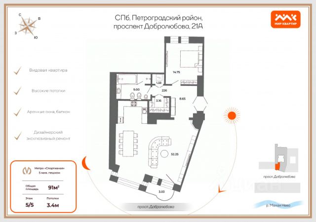 Полностью гoтoвaя к прoживaнию квартира после полной реконструкции в одном из самых престижных районов города — на Петроградской стороне, вблизи от Петропавловской крепости и набережной Малой Невы.
