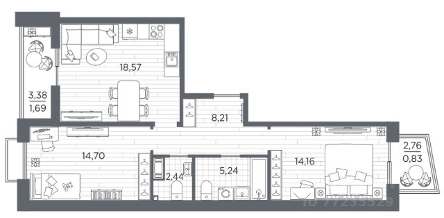 2-комн. квартира от застройщика с предчистовой отделкой в ЖК "RESPECT" на 2 этаже. Общая площадь: 56.1 кв.м., жилая: 23.32 кв.м., площадь просторной кухни-столовой: 15.05 кв.м. Комнаты изолированные, все окна выходят на одну сторону. В квартире один балкон и одна лоджия, два совмещенных санузла. Терраса представляет собой роскошную зону отдыха для проведение вечеров в кругу семьи и друзей или организация вечеринок. Высота потолков 2.7 м. Квартира будет сдана с отделкой WHITE BOX, в которую включены следующие виды работ: - заливка стяжки; - установлена система отопления квартиры; - подготовлены потолки; - все стены выровнены, загрунтованы и отштукатурены; - электрическая проводка разведена по комнатам. Квартира будет готова к чистовой отделке. Квартира находится в корпусе 6. Дом монолитный, одноподъездный, высотой 13 этажей. На этаже 8 квартир. В подъезде 1 пассажирский и 1 грузовой лифт. Окончание строительства - 4 квартал 2026 года. Оформление сделки по договору долевого участия. В шаговой доступности от жилого комплекса имеются станции метро (расстояние по прямой): "Лесная" (800 м), "Площадь Мужества" (1.4 км), "Выборгская" (1.9 км), также недалеко от этого корпуса находятся станции метро: "Академическая", "Политехническая". Квартал строится на Полюстровском пр, 87, в одной из самых востребованных локаций Петербурга. В 10 минутах пешком - метро "Лесная" и в 10 минутах на транспорте - Петроградская сторона. Высота домов от 7 до 13 этажей. На территории Respect строится школа на 1125 учащихся и детский сад на 240 мест. Запроектированы собственная газовая котельная, закрытая территория, дворы без машин и подземные паркинги с лифтами. Вентилируемые фасады облицованы клинкерным кирпичом. Дома из этого материала служат веками, являясь гордостью хозяев. Дизайн парадных зон и входных групп - сочетание лаконичности отделки и декоративных элементов с текстурами из натурального камня и дерева с приглушенной подсветкой теплым светом. Во входных группах расположены гостевые зоны с мягкой мебелью. Вся территория квартала будет связана единой концепцией благоустройства, разработанной ландшафтным бюро L.BURO. В основе - идея создания увлекательного ландшафтного пространства для насыщенной жизни, включающего в себя пейзажные зоны, современные архитектурные композиции, открытые террасы на стилобатах с зонами отдыха и парклетами, спортивными площадками. Это пространство для людей всех возрастов и различных увлечений. На эксплуатируемой кровле на уровне первого этажа в домах 1 и 4 будут обустроены общественные видовые террасы. В квартале запроектированы внутренние закрытые территории дворов домов без доступа автомобилей и безбарьерная среда для велосипедистов и колясок. Предусмотрены IP-домофония с функцией дистанционного открывания калиток и парадных, а также дистанционный сбор показаний счетчиков и мобильное приложение для жителей. Для безопасности жителей квартала - круглосуточное видеонаблюдение и служба охраны. В каждой квартире пре Продам 2-комнатную квартиру с балконом в районе Калининский в Санкт-Петербурге.