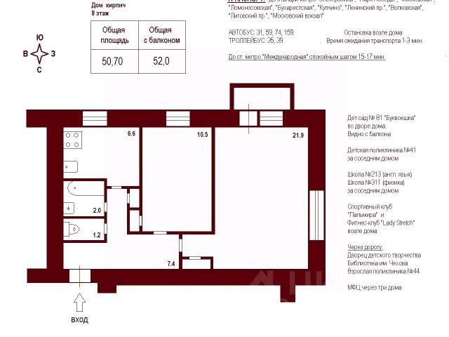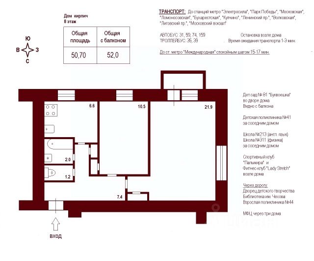 Продаётся 2-комн. квартира площадью 50,7 кв.м на 7 этаже 12 этажного дома (Корпус 6, Секция 2) проекта ПИК Витебский парк. Светлый просторный подъезд на уровне земли, функциональная планировка, большие окна, предчистовая отделка. Жилой квартал "Витебский парк" находится во Фрунзенском районе Санкт-Петербурга, в 15 минутах пешком от метро "Обводный канал". А в 2027 году всего в паре минут от проекта планируют открыть станцию метро "Боровая". В квартал входят 3 детских сада, школа и 7 жилых домов с дворами-парками, куда не могут зайти посторонние люди и заехать автомобили. Школа на 1250 мест и детский сад на 350 мест откроются одновременно с заселением первой очереди, это значит, что жители проекта смогут отдать своих детей в новые образовательные учреждения на территории квартала. Во дворах приятно отдыхать, знакомиться с соседями и даже заниматься йогой, а для детей мы построим детские площадки. Рядом появятся современные спортивные площадки. На первых этажах домов откроются магазины, кафе и другие сервисы. Через весь жилой район протянется широкий пешеходный бульвар для прогулок и спорта. Рядом с "Витебским парком" есть всё для комфортной жизни: магазины, торговые центры, фитнес-клубы, кафе и рестораны, а ещё детские сады, школы, вузы и поликлиника. Артикул 1005280 (Застройщик ООО "СЗ "Лиговский Сити") [cn_sbp_1864617]