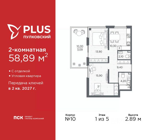 Двухкомнатная квартира с отделкой в ЖК "PLUS Пулковский" на 1 этаже. Общая площадь: 58.89 кв.м., жилая: 29.8 кв.м., площадь просторной кухни-столовой: 10.3 кв.м. Квартира угловая, идеально подойдет любителям тишины и панорамных видов. В квартире один балкон, один совмещенный и один раздельный санузел. Наличие террасы в квартире открывает возможность для создания зон отдыха в кругу семьи и друзей. Высота потолков 2.89 м. Все квартиры в проекте сдаются с полной чистовой отделкой. Выполняется в двух стилистических решениях светлый стиль и темный современный стиль. Вам остается только расставить мебель. Важное преимущества отделки от застройщика в гарантии на все работы и в том, что фактическая стоимость полной отделки распределяется в ипотечных платежах при покупке в ипотеку. Дом монолитный, трехподъездный, высотой 5 этажей. Квартира находится в 3-й секции в корпусе 10. На этаже 6 квартир. В подъезде 1 грузовой лифт. Окончание строительства - 2 квартал 2027 года. Оформление сделки по договору долевого участия. ЖК "PLUS Пулковский" расположен в престижном Московском районе на пересечении Пулковского и Волхонского шоссе, по которым можно быстро добраться до КАД и до станций метро Московская и Звёздная. Поблизости расположены дворцово-парковые ансамбли Пушкина, Павловска, Петергофа, Гатчины, Ломоносова, а также вся торговая и развлекательная инфраструктура: ТК Лето, Outlet Village Pulkovo, Пулково-3, гипермаркеты Лента, Окей, Metro. На территории комплекса будут построены средняя образовательная школа на 825 мест с двумя бассейнами, 2 детских сада на 220 мест каждый. В детских садах тоже будут бассейны. Кроме этого будет построен медицинский центр для взрослых и детей. Во дворах буду оборудованы спортивные и безопасные детские площадки, на первых этажах домов будут расположены коммерческие помещения. Для автолюбителей будут подземные и наземный паркинги. Для жителей домов будет доступно "приложение жителя", которое предоставит такие возможности: — дистанционное открытие дверей в парадную и на территорию комплекса, — просмотр изображений с видеокамер, — контроль за показаниями счетчиков, — коммуникация с УК. Показания всех счетчиков будут собираться дистанционно. В квартирах будет выполнена коллекторная разводка отопления в стяжке пола от коллекторов в межквартирных коридорах. Застройщик ЖК "PLUS Пулковский" - группа компаний ПСК, которая является одной из ведущих девелоперских компаний Санкт Петербурга. Более 16 лет она возводит в Северной столице качественное жилье премиум, бизнес и комфорт-класса, социальные объекты школы и детские сады, апарт-комплексы и торговые центры и является четырехкратным обладателем золотого знака "Надежный застройщик России". #2mm262 2-комнатная квартира с балконом рядом с метро Дунайская.
