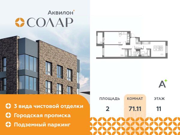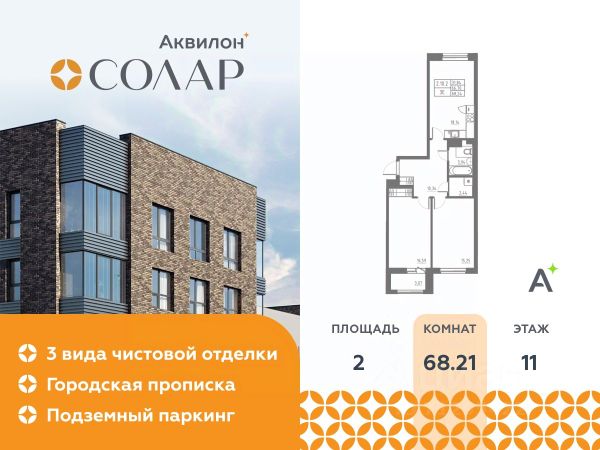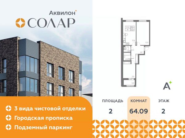 Просторная 2-комн. квартира с предчистовой отделкой в ЖК "Аквилон Солар" на 11 этаже. Общая площадь: 62.75 кв.м., жилая: 28.54 кв.м., площадь просторной кухни-столовой: 17.04 кв.м. Квартира - распашонка, без проходных комнат, окна выходят на paзные стороны дома. В квартире один балкон, один раздельный санузел. Высота потолков 2.7 м. Дом монолитный, многоподъездный, переменной этажности, от 10 до 12 этажей. Квартира находится в 1-й секции высотой 12 этажей в корпусе 1. На этаже 6 квартир. В подъезде 1 пассажирский и 1 грузовой лифт. Окончание строительства - 3 квартал 2028 года. Оформление сделки по договору долевого участия. Аквилон Солар — это пространство нового городского ритма, где свет становится частью архитектуры, а форма — отражением внутренней гармонии. Здесь всё подчинено идее современного комфорта и спокойной уверенности в завтрашнем дне. Дом стремится стать естественным продолжением жизни: сбалансированной, продуманной, наполненной энергией света и движения. Это место, где архитектура не давит, а поддерживает, где город чувствуется, но не мешает, и где каждая деталь говорит о вкусе, внимании и уважении к человеку. Преимущества Повышенная инсоляция квартир Планировки продуманные до мелочей Большие кухни-гостиные до 27,3м2 Мастер-спальни Высота потолков до 2,85 м Увеличенные окна Школы и детские сады в пешей доступности Экопарк на 3 гектара Отделка квартир Чистовая отделка в трех цветовых решениях: Sand, Terra и Graphite Дозаказ для любой квартиры Стандарты Группы Аквилон для вашей комфортной жизни Thermo-S экономия на коммунальных платежах за счет дополнительно утепленных стен, кровли и цоколя. Энергоэффективные окна с селективным покрытием и аргоновым заполнением Soundstop - дополнительная шумоизоляция внутренних перегородок и межэтажных перекрытий, шумозащитные окна, малошумные лифты Light-in - в квартирах устанавливаются широкоформатные окна, увеличены на 30%. Высота подоконников на уровне 60 см от пола. Vent-in - в каждой комнате есть клапаны индивидуальной вентиляции, которые обеспечивают приток свежего воздуха с улицы. inHOME умный дом в каждой квартире Интеллектуальная цифровая система, которая позволит дистанционно решать бытовые вопросы, управлять квартирой и экономить на оплате коммунальных услуг. В состав inHOME входят: IP-домофон, Face key, "умные" счетчики, датчики протечки, дистанционное отключение розеток, и т.д. Паркинг Подземный паркинг с доступом на лифте Локация - м. Звездная и м. Купчино 10 мин. на машине - КАД 5 мин. на машине - Пулково 15 мин. на машине - Невский проспект 35 мин. на машине. #27ofcZ