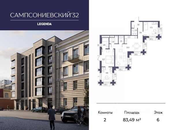 Квартира с двумя спальнями в комплексе "Сампсониевский 32" от LEGENDA на 8 этаже. -Общая площадь: 82.31 кв.м. -Жилая: 24.01 кв.м. -Площадь просторной кухни-столовой: 30.57 кв.м. -Высота потолков 2.7 м. Квартира без проходных комнат, окна выходят нa три cтopoны дома. В квартире три балкона, два совмещенных санузла. ЖК "Сампсониевский, 32" квартал бизнес-класса в Выборгском районе Санкт-Петербурга недалеко от набережной Большой Невки и Петроградской стороны. Отличают комплекс каскадные фасады с большой площадью остекления, видовые квартиры с террасами. Современные инженерные и технические решения, повышающие качество жизни TechnoBox включают в себя: стационарный и удаленный контроль дома, систему Air Design, обеспечивающую чистый воздух без лишнего шума, мультисервисную сеть, объединяющую коммуникационные системы. Квартиры сдаются с предчистовой отделкой: выровнены пол и стены, проведена электрика, предусмотрена шумоизоляция, встроенная система вентиляции. В каждой квартире установлена взломостойкая входная дверь, окна со специальным термоизолированным алюминиевым профилем. В ЖК "Сампсониевский, 32" много вариантов планировок: квартиры с террасой, мастер-спальней, ванной комнатой с окном, гардеробной комнатой. Двор закрыт от транспорта, здесь будут зоны с дизайнерским оформлением для игр и отдыха. Срок сдачи 4 квартал 2026 года. В отапливаемом подземном паркинге 298 мест, спуститься туда можно на лифте из своей квартиры. Комплекс находится на границе крупных районов, рядом с набережными, которые ведут в Приморский, Калининский и Центральный районы, а через Сампсониевский, Гренадёрский и Кантемировский мосты можно попасть в Петроградский район. До станции метро "Выборгская" 900 м, до станции метро "Петроградская" 2,6 км. Финляндский вокзал находится в 2,5 км от ЖК, а Западный скоростной диаметр (ЗСД) в 10 км. Рядом с ЖК находится несколько гимназий, общеобразовательных школ и детских садов. Здесь много медицинских учреждений, кафе, ресторанов, торговых центров, гипермаркетов. Меньше чем в 1 км от ЖК Сампсониевский и Выборгский сады, а в 2 км находится Ботанический сад, набережная реки Карповки с качелями и зонами отдыха у воды. Квартира реализуется напрямую от застройщика. Обращение по данному предложению осуществляется через отдел продаж застройщика. Для агентств недвижимости действует отдельный формат сотрудничества.