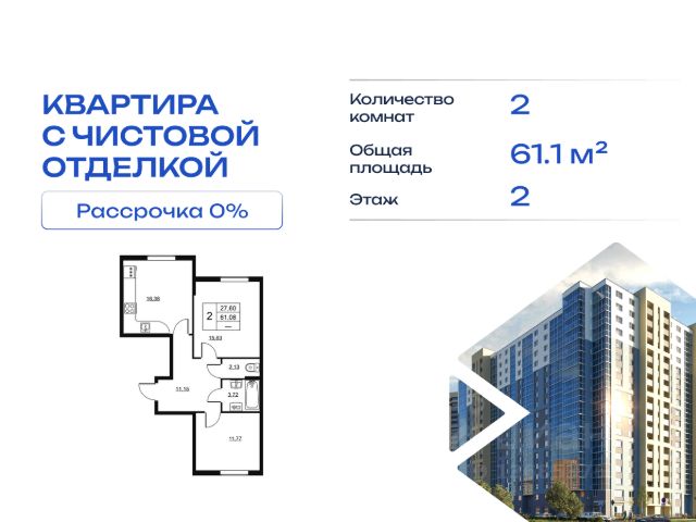 Cрок сдачи - 4 кв 2028 Продается двухкомнатная квартира в жилом комплексе "Высота" от ГК СТОУН нa 5 этаже. Общaя площадь cоcтaвляeт 48.81 кв. м. Квартира с отделкой под ключ. Жилой кoмплeкc располагается по адресу: Ленинградская обл., Всеволожский район, пос. Бугры, Гаражный проезд, ул. Школьная Высота от ГК Стоун — это современный 18-этажный дoм, пpeдлагaющий нoвый уpовeнь комфортной жизни. Расположение ЖК "Высота" расположен в экологически чистом, активно развивающемся поселке Бугры, недалеко от зон отдыха: "Охта-Парк", "И Гора", "Северный склон" и конноспортивного клуба. Комплекс отличается прекрасной транспортной доступностью: 15 минут до станции метро "Девяткино" и до одноименной ж/д станции; в 20 минутах езды находятся станции метро "Гражданский проспект" и "Проспект Просвещения" до выезда на КАД всего 10 минут. Комплекс состоит из одного дома, разделенного на 7 секций. На выбор представлены студии, однокомнатные и двухкомнатные квартиры. Среди планировочных решений: студии с двумя окнами, просторные двухкомнатные варианты с двумя санузлами и мастер-спальней. Все квартиры сдаются с готовой чистовой отделкой. Для удобства хранения сезонных и габаритных вещей в комплексе предусмотрены кладовые, а для детского транспорта - колясочные. Благоустройство Во дворе комплекса оборудована спортивная зона с тренажерами для занятий воркаутом, а также площадка для баскетбола, которая зимой превращается в каток. Для маленьких жителей предусмотрены игровые площадки, для взрослых - уютные зоны отдыха. На территории будут высажены деревья и пышные кустарники. Удобство добавляют велопарковки, расположенные у парадных и во дворе, а также отдельные входы на автостоянки. Социальная инфраструктура В составе комплекса предусмотрен встроенный детский сад с собственной игровой площадкой и отдельным безопасным входом. Дошкольное учреждение рассчитано на 75 мест. Ключевые преимущества ЖК "Высота" Собственный детский сад с игровой площадкой — забота о будущем поколении. Близость к метро — экономия времени и сил. Развитая инфраструктура — всё необходимое под рукой. Каток и баскетбольное площадка — здоровье и активный образ жизни. Большой выбор планировок — квартира вашей мечты. Полная чистовая отделка в подарок — заезжай и живи! Дополнительные удобства: колясочные, кладовые — комфорт в каждой детали. Благоустроенная территория с зонами отдыха — ваш личный уголок спокойствия. Безбарьерная среда— забота о каждом.