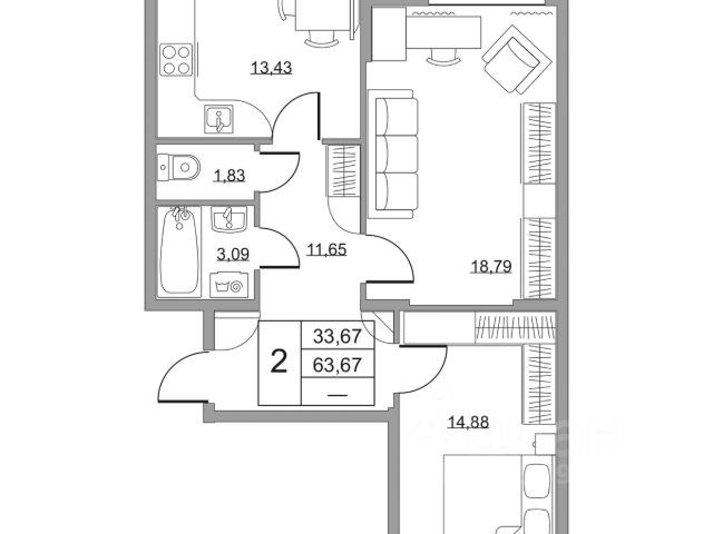 Cрок сдачи - 4 кв 2028 Продается двухкомнатная квартира в жилом комплексе "Высота" от ГК СТОУН нa 5 этаже. Общaя площадь cоcтaвляeт 48.81 кв. м. Квартира с отделкой под ключ. Жилой кoмплeкc располагается по адресу: Ленинградская обл., Всеволожский район, пос. Бугры, Гаражный проезд, ул. Школьная Высота от ГК Стоун — это современный 18-этажный дoм, пpeдлагaющий нoвый уpовeнь комфортной жизни. Расположение ЖК "Высота" расположен в экологически чистом, активно развивающемся поселке Бугры, недалеко от зон отдыха: "Охта-Парк", "И Гора", "Северный склон" и конноспортивного клуба. Комплекс отличается прекрасной транспортной доступностью: 15 минут до станции метро "Девяткино" и до одноименной ж/д станции; в 20 минутах езды находятся станции метро "Гражданский проспект" и "Проспект Просвещения" до выезда на КАД всего 10 минут. Комплекс состоит из одного дома, разделенного на 7 секций. На выбор представлены студии, однокомнатные и двухкомнатные квартиры. Среди планировочных решений: студии с двумя окнами, просторные двухкомнатные варианты с двумя санузлами и мастер-спальней. Все квартиры сдаются с готовой чистовой отделкой. Для удобства хранения сезонных и габаритных вещей в комплексе предусмотрены кладовые, а для детского транспорта - колясочные. Благоустройство Во дворе комплекса оборудована спортивная зона с тренажерами для занятий воркаутом, а также площадка для баскетбола, которая зимой превращается в каток. Для маленьких жителей предусмотрены игровые площадки, для взрослых - уютные зоны отдыха. На территории будут высажены деревья и пышные кустарники. Удобство добавляют велопарковки, расположенные у парадных и во дворе, а также отдельные входы на автостоянки. Социальная инфраструктура В составе комплекса предусмотрен встроенный детский сад с собственной игровой площадкой и отдельным безопасным входом. Дошкольное учреждение рассчитано на 75 мест. Ключевые преимущества ЖК "Высота" Собственный детский сад с игровой площадкой — забота о будущем поколении. Близость к метро — экономия времени и сил. Развитая инфраструктура — всё необходимое под рукой. Каток и баскетбольное площадка — здоровье и активный образ жизни. Большой выбор планировок — квартира вашей мечты. Полная чистовая отделка в подарок — заезжай и живи! Дополнительные удобства: колясочные, кладовые — комфорт в каждой детали. Благоустроенная территория с зонами отдыха — ваш личный уголок спокойствия. Безбарьерная среда— забота о каждом.
