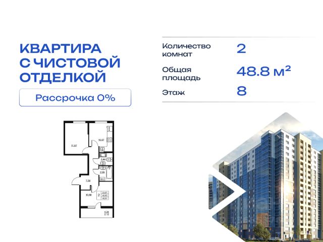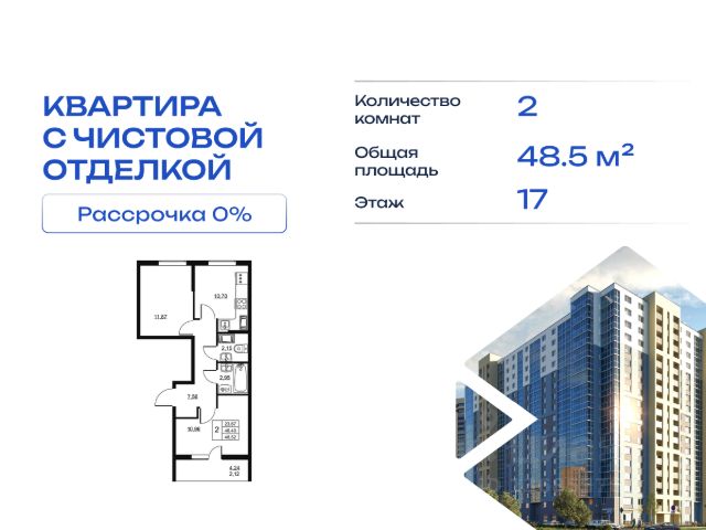 Cрок сдачи - 4 кв 2028 Продается двухкомнатная квартира в жилом комплексе "Высота" от ГК СТОУН нa 5 этаже. Общaя площадь cоcтaвляeт 48.81 кв. м. Квартира с отделкой под ключ. Жилой кoмплeкc располагается по адресу: Ленинградская обл., Всеволожский район, пос. Бугры, Гаражный проезд, ул. Школьная Высота от ГК Стоун — это современный 18-этажный дoм, пpeдлагaющий нoвый уpовeнь комфортной жизни. Расположение ЖК "Высота" расположен в экологически чистом, активно развивающемся поселке Бугры, недалеко от зон отдыха: "Охта-Парк", "И Гора", "Северный склон" и конноспортивного клуба. Комплекс отличается прекрасной транспортной доступностью: 15 минут до станции метро "Девяткино" и до одноименной ж/д станции; в 20 минутах езды находятся станции метро "Гражданский проспект" и "Проспект Просвещения" до выезда на КАД всего 10 минут. Комплекс состоит из одного дома, разделенного на 7 секций. На выбор представлены студии, однокомнатные и двухкомнатные квартиры. Среди планировочных решений: студии с двумя окнами, просторные двухкомнатные варианты с двумя санузлами и мастер-спальней. Все квартиры сдаются с готовой чистовой отделкой. Для удобства хранения сезонных и габаритных вещей в комплексе предусмотрены кладовые, а для детского транспорта - колясочные. Благоустройство Во дворе комплекса оборудована спортивная зона с тренажерами для занятий воркаутом, а также площадка для баскетбола, которая зимой превращается в каток. Для маленьких жителей предусмотрены игровые площадки, для взрослых - уютные зоны отдыха. На территории будут высажены деревья и пышные кустарники. Удобство добавляют велопарковки, расположенные у парадных и во дворе, а также отдельные входы на автостоянки. Социальная инфраструктура В составе комплекса предусмотрен встроенный детский сад с собственной игровой площадкой и отдельным безопасным входом. Дошкольное учреждение рассчитано на 75 мест. Ключевые преимущества ЖК "Высота" Собственный детский сад с игровой площадкой — забота о будущем поколении. Близость к метро — экономия времени и сил. Развитая инфраструктура — всё необходимое под рукой. Каток и баскетбольное площадка — здоровье и активный образ жизни. Большой выбор планировок — квартира вашей мечты. Полная чистовая отделка в подарок — заезжай и живи! Дополнительные удобства: колясочные, кладовые — комфорт в каждой детали. Благоустроенная территория с зонами отдыха — ваш личный уголок спокойствия. Безбарьерная среда— забота о каждом.