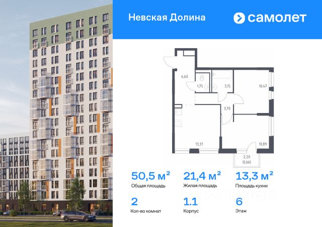 Продается уютная 2-комнатная квартира от застройщика в жилом комплексе "Город звезд" в новом городе на правом берегу Невы. До метро можно добраться на транспорте всего за 13 минут. Удобная, классическая, функциональная европланировка, большая кухня-гостиная 15.44 м², вместительная прихожая 7.21 м². Общая площадь квартиры - 50.72 м², жилая 22.4 м², высота потолка 2.77 м. Квартира продается с отделкой "NORD LINE WHITE". Что особенного в ЖК "Город звезд"? • Инновационный Лицей Setl с оригинальной архитектурной концепцией и уникальной образовательной средой • Невский лесопарк под окнами - всегда свежий воздух и полноценный отдых на природе • Четыре тематические площади отдыха с разнообразным благоустройством • Аллея Звёзд - променад протяженностью 5 км с ландшафтным озеленением, зонами отдыха и велодорожкой • Выход на набережную реки Утки, где можно порыбачить или взять напрокат лодку • Единая входная группа с ресепшен и подземный паркинг