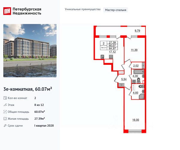 Продаётся 2-комнатная квартира в ЖК "Цивилизация на Неве" на 14 этаже. Общая площадь составляет 42.66 кв. м. Квартира с white box отделкой. Жилой комплекс "Цивилизация на Неве" располагается по адресу Санкт-Петербург, Невский. "Цивилизация на Неве" - видовые дома бизнес-класса, расположенные вдоль набережной Невы, всего в 7 км от исторического центра. Жилой комплекс идеально выражает особый дух, свойственный знаменитым просторным кварталам постройки сталинской эпохи в Москве и на Московском проспекте в Петербурге. Расположение: • 15 мин на авто до Невского проспекта; • 15 мин на авто до Московского вокзала; • 5 мин на авто до станции метро "Улица Дыбенко"; • 14 мин (7 км) до КАД. Уникальный дизайн входных зон, закрытая территория, видеонаблюдение и охрана, подземный паркинг с лифтом и другие особенности проекта отвечают заявленному классу. В каждом дворе предусмотрено озеленение по индивидуальному ландшафтному проекту с благородными растениями и кустарниками. Преимущества: • Закрытая территория с видеонаблюдением; • Подземный паркинг с лифтом; • Детская площадка на приватной безопасной территории; • Несколько детских садов и школ; • Инфраструктура шаговой доступности на первых этажах корпусов. Успейте приобрести квартиру на выгодных условиях! Чтобы узнать подробности, обращайтесь за консультацией по телефону.