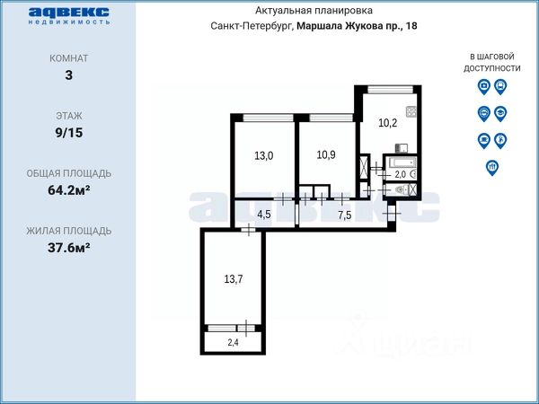 В продаже отличная двухкомнатная квартира от собственника на 7м этаже 9ти этажного дома сери ЛГ-600, общей площадью 44 метра. Комнаты 15 и 12 метров, 6,4 кухня, с/у раздельный. Квартира расположена в комфортном для проживания районе с хорошо развитой инфраструктурой: -7 минут пешком от метро проспект Ветеранов -теплый паркинг напротив дома -магазины Перекресток и Магнит в соседнем здании -удобный выезд на проспект Ветеранов, Ленинский проспект, КАД в 5 минутах -рядом расположены школа и детский сад, а также парк в 3 минутах ходьбы В квартире сделан качественный ремонт. Потолки -натяжные, окна -стеклопакеты, заменены радиаторы отопления, внутриквартирная разводка воды- пластик. Кухня, коридор и лоджия выложены керамогранитом. Встроенная кухня от IKEA, а также мебель и вся техника остаются новому владельцу в качестве бонуса. Встречная покупка Полная стоимость в договоре Звоните- договоримся о показе в удобное для вас время Агентствам просьба не беспокоить